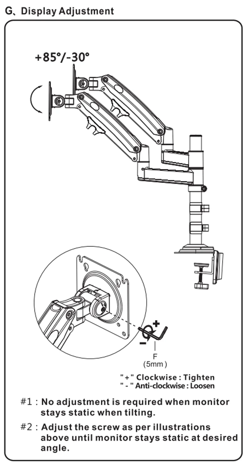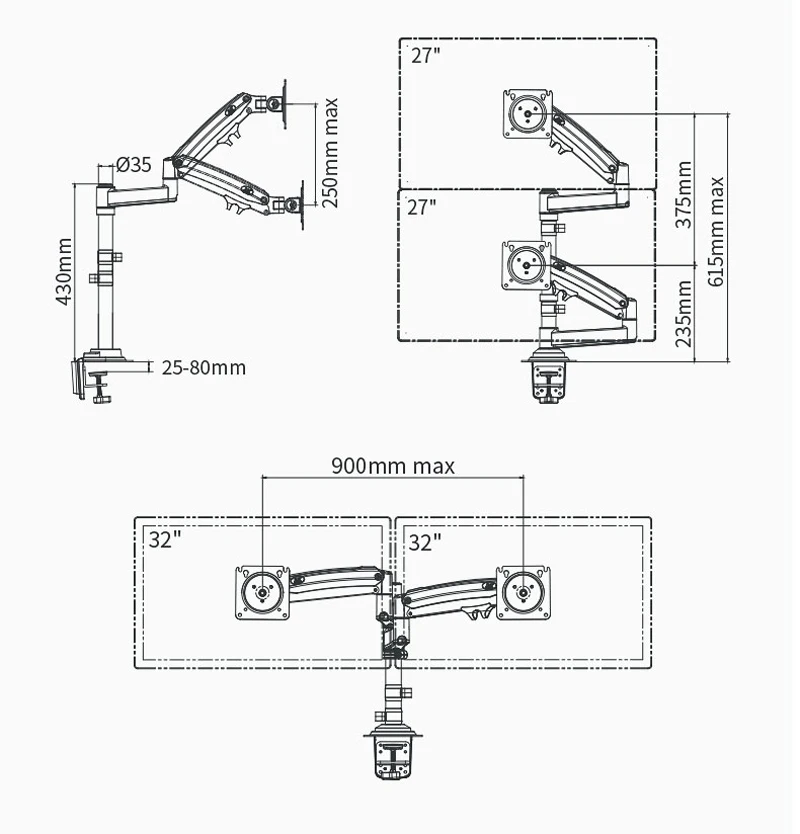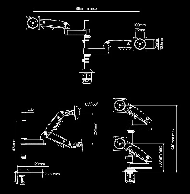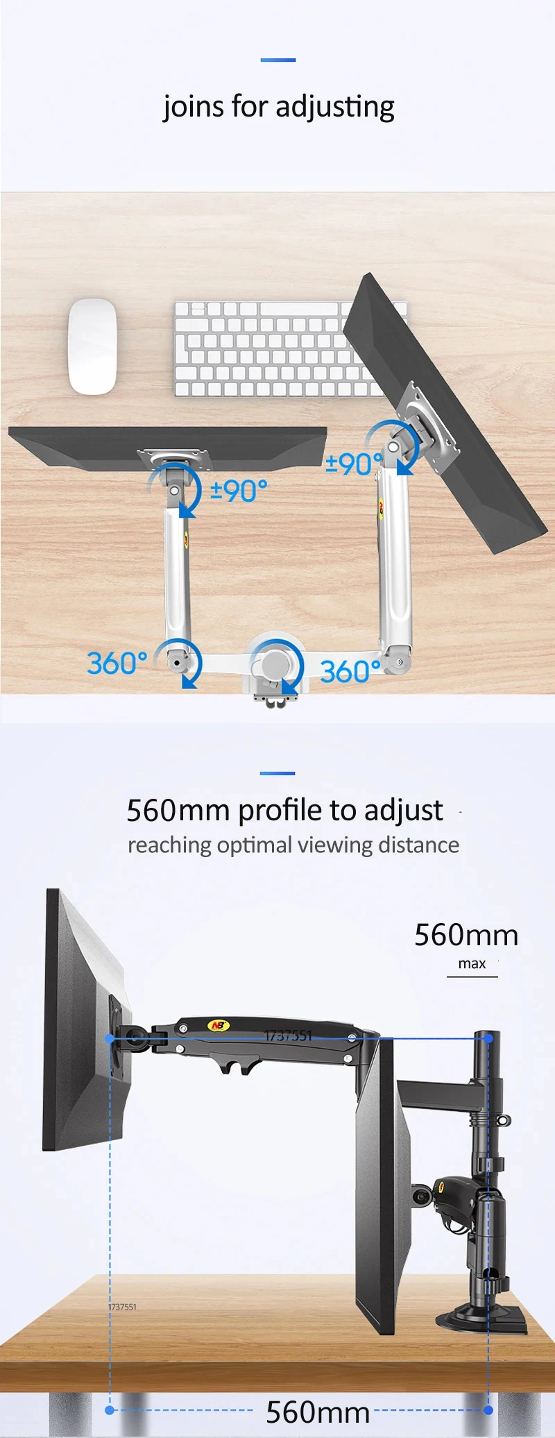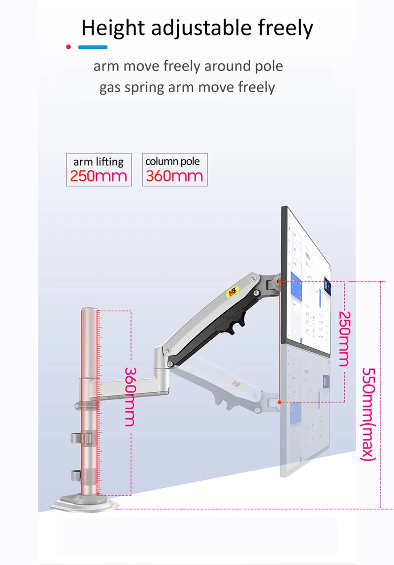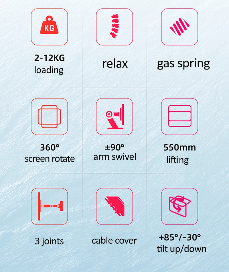 Carga: 2-9kg para cada tela (por favor certifique-se de que sua tela está dentro desta escala, ou a mola de gás não poderia trabalhar)